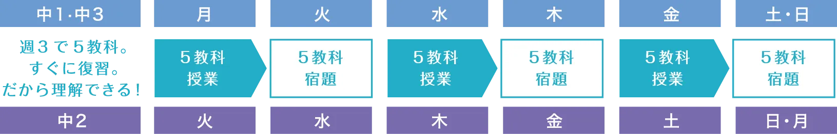 - テスト前だけでなく毎回5教科指導。