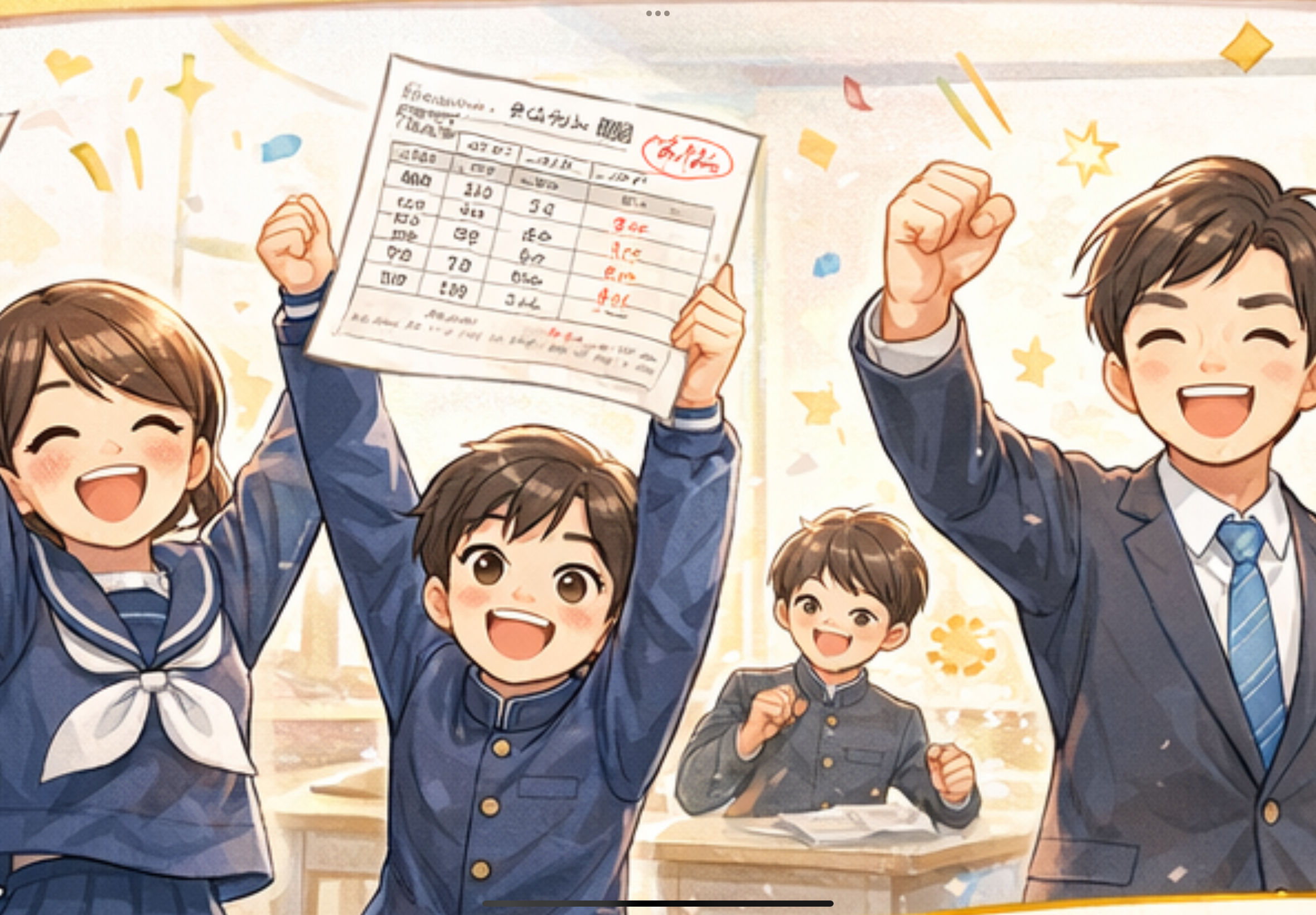 (入塾後すぐの定期テストで5教科合計100点以上アップされる方が多数!)
