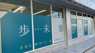 ひと言 歩未塾中学部・高校部の教室は 山下駅前アークビル1階に移転しました! 2025年12月に歩未塾中学部・高校部の教室は山下駅前アークビル1階に移転しました!新しい教室で気持ちも新たに頑張っています♪ちなみに歩未塾のロゴや窓パネルのデザインは40年来の友人に作成してもらいました♪今後とも歩未塾をよろしくお願いしま... 2026.01.20 ひと言